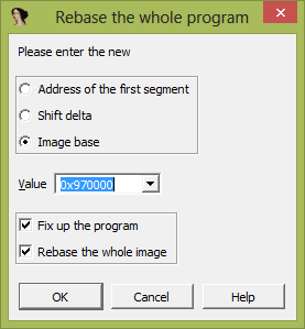 Edit > Segments > Rebase program 으로 이동하여 IDA Pro에서 ImageBase 값을 찾을 수 있습니다 .