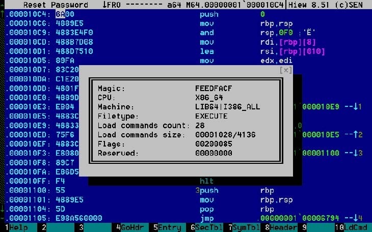 Hiew 는 코드 작업에 중점을 둔 바이너리 파일 편집기입니다. x86, x86-64, ARM용 디스어셈블러와 x86 및 x86-64용 어셈블러가 내장되어 있습니다.