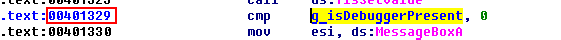 IDA Pro를 다시 실행하고 g_isDebbugerPresent 변수의 주소로 이동합니다.