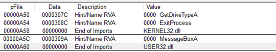 IAT후킹은 IAT(Import Address Table)를 후킹 하는 것으로, IAT는 쉽게 말해 해당 프로그램이 어떤 라이브러리에서 어떤 함수를 사용하고 있는지를 기술한 테이블이다. 예를 들어, 어떤 프로그램이 Kernel32.dll의 GetDriveType API를 호출한다면 해당 API를 사용하기 위한 주소를 IAT에서 참조할 수 있다.