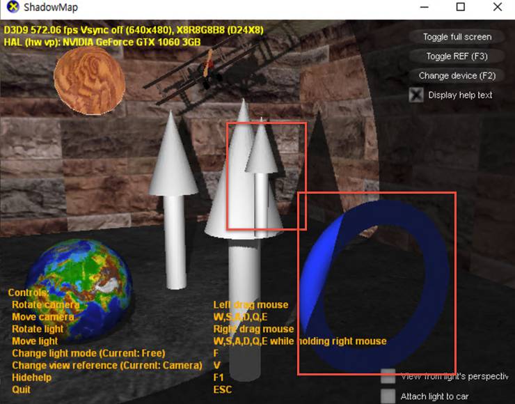 D3D9와 마찬가지로 DepthEnable 필드를 활성화/비활성화하면서 원하는 물체만 표현될 수 있도록 해야 한다. 이 부분의 구현은 독자에게 숙제로 남겨두도록 한다 😎